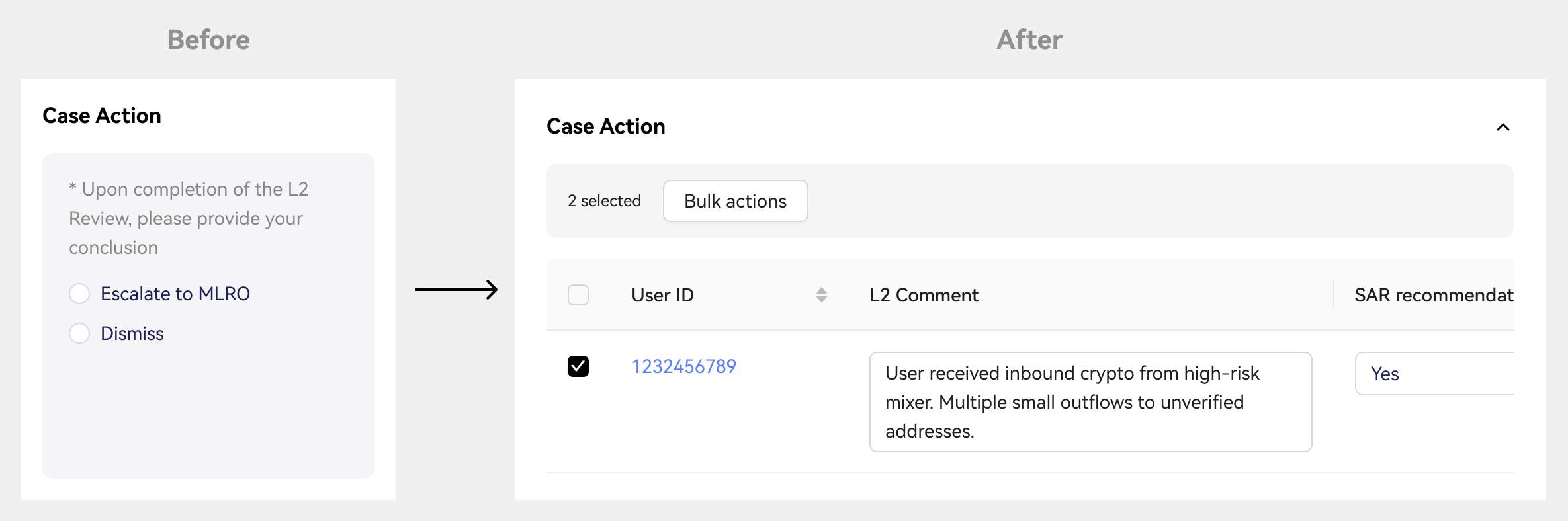 Designing a collaborative investigation workflow for compliance teams reviewing high-risk cases.